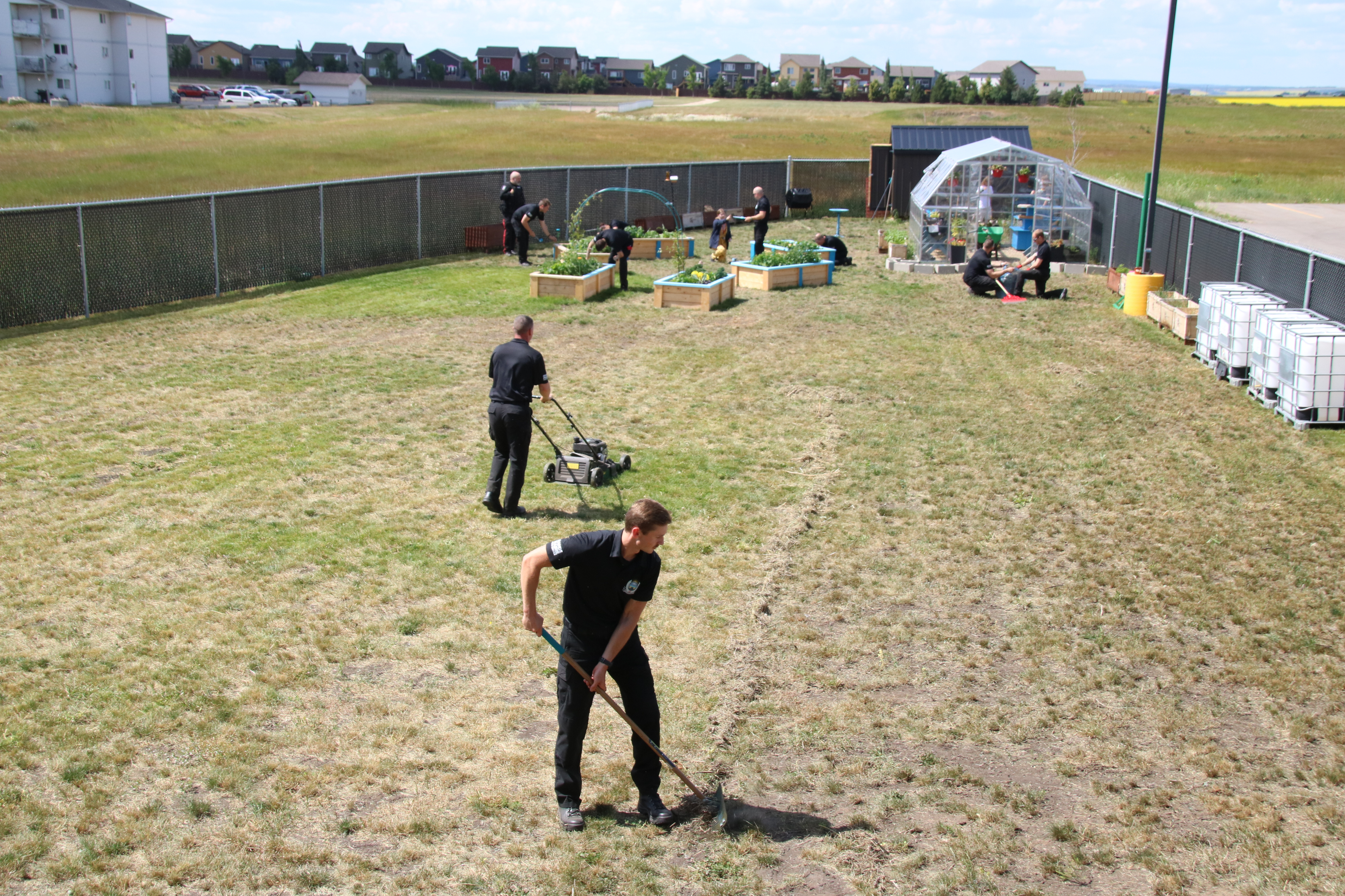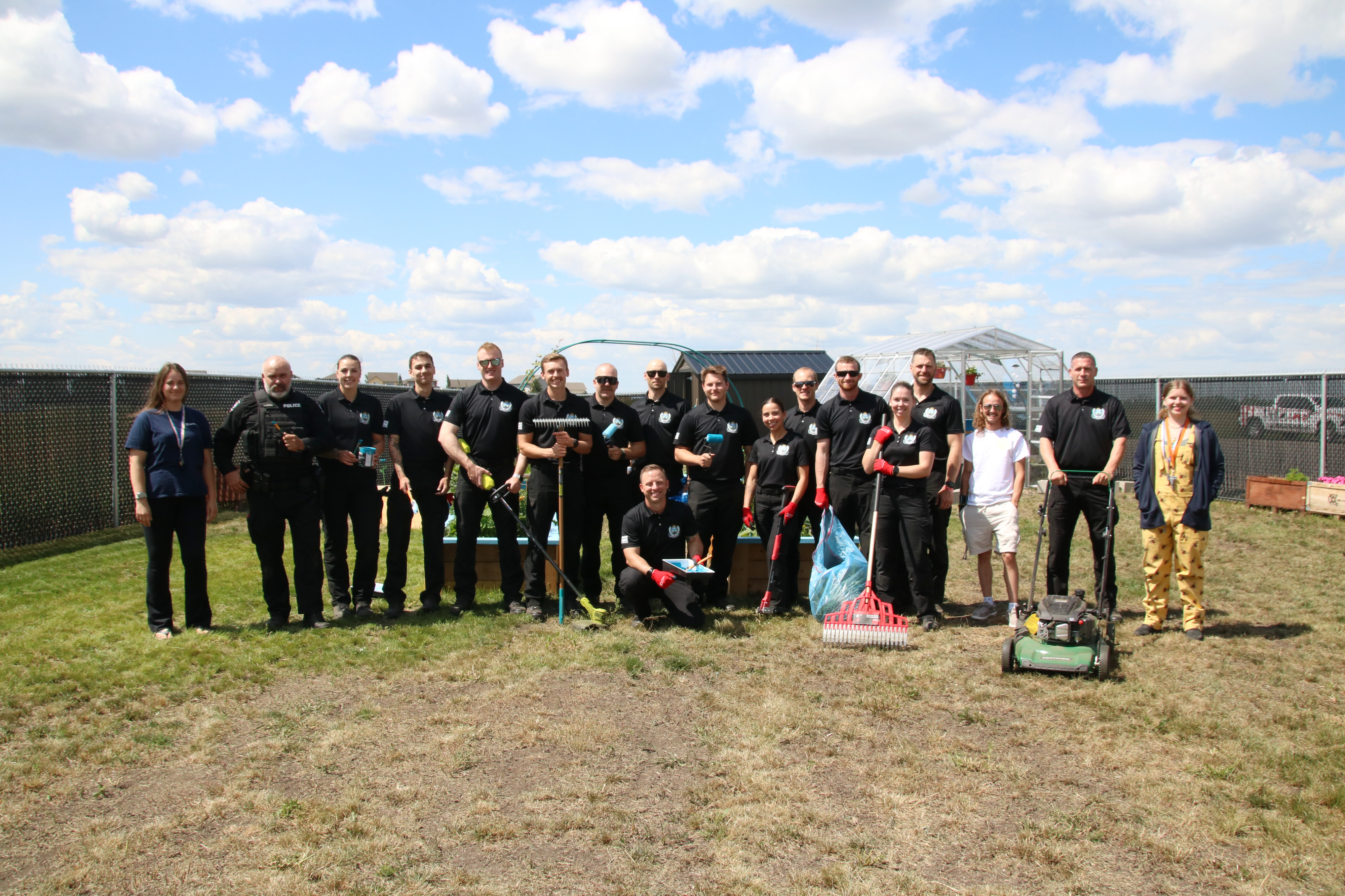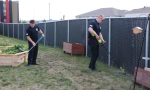 After learning during a meeting with Sunrise House Youth Emergency Shelter that their new home needed some landscaping support, Grande Prairie Police Service Chief Dwayne Lakusta put Recruit Class #2 to work!
